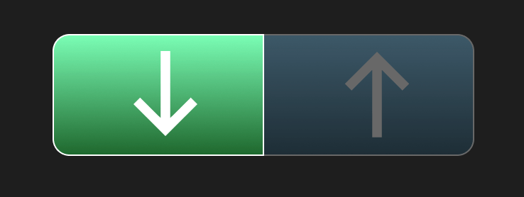 The implication here is that the up arrow is the “active” one, so you don’t need to press it again as it won’t do anything. Only the non-active button is pressable. I feel like this is okay-ish as a pattern, but it’s not my favorite as the active state is less prominent instead of more prominent almost indicating it’s disabled for some other reason or doesn’t matter.
