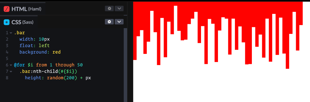 With random() in vanilla CSS, no such loops are needed and making the code quite simple and satisfying.