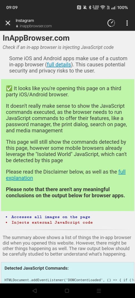 - Attempts to detect you’re in an in-app browser and, if so, which app it is inside of.