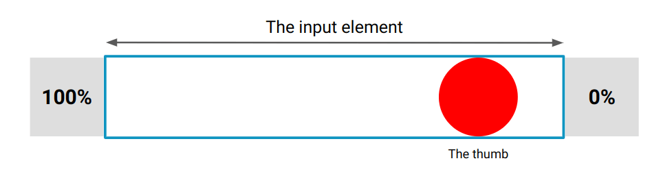 When the scroll is at the left, the element is at the right and when the scroll is at the right, the element is at the left. The same logic applies to our thumb even if there is nothing to scroll. When the thumb is at the right edge, this is our 0% state and we need to have the max value there. The left edge will be the 100% state and it’s the min value.