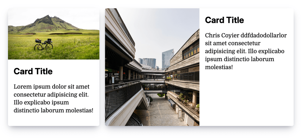 I can rest easy knowing the .card-big styles will apply and appropriately override because of the proximity of the class to the things I want to style (including itself!)