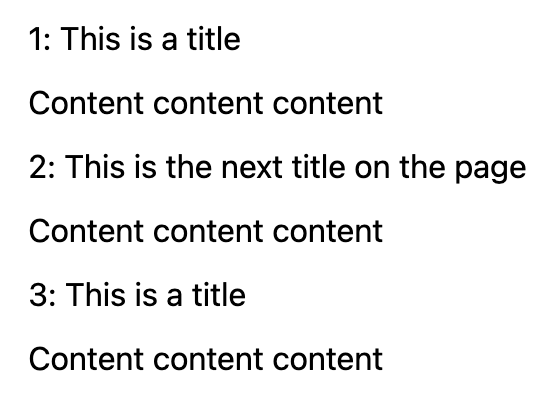 Let’s get slightly more realistic. What if you have various headings on your page, representing section titles. And, as you might have guessed, you want them numbered.