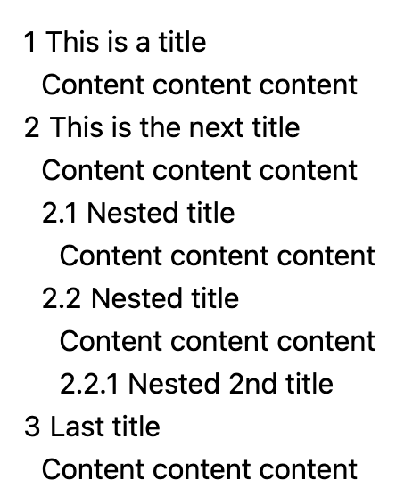 Remember the titles we saw before? What if those containers with the numbered titles could nest within each other.